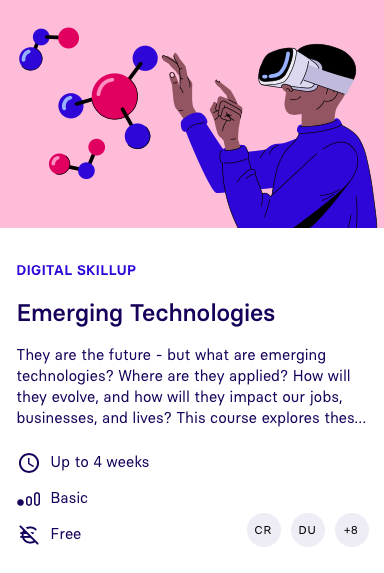 Pobuda DigitalSkillUp je prispevek k Digital Skills and Jobs platformi ter predstavlja njen učni steber za nastajajoče tehnologije. Zagotavlja preproste spletne tečaje v 10 evropskih jezikih, ki so zasnovani tako, da državljanom, zaposlenim, iskalcem zaposlitve in organizacijam pomagajo najti pot do izpopolnjevanja in preoblikovanja novih tehnologij in digitalne preobrazbe.