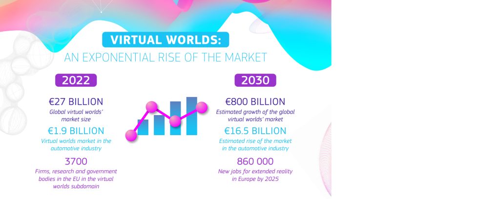 V resničnem svetu morda (še) ne moremo potovati na en mah, vendar je to mogoče v metaverseju. Virtualni svetovi se res vedno bolj uveljavljajo: postajajo tudi vse bolj izpopolnjeni, z jasnejšimi podobami in avatarji, ki so podobni resničnim ljudem. Evropska komisija ocenjuje, da bo do leta 2030 vse več ljudi dnevno uporabljalo metaverse - to je nova vrsta digitalnega prehoda z novimi izzivi in novimi priložnostmi.