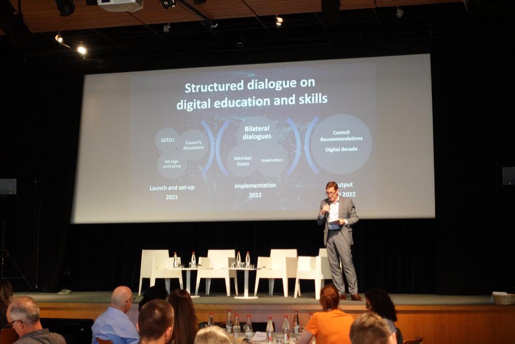 Mário Lelovský iz slovaške nacionalne koalicije za digitalne spretnosti in delovna mesta je govoril o pomenu političnega vodstva in pripravljenosti za sodelovanje na nacionalni ravni (akademska sfera, podjetja in vlada). Omenil je tudi pomen digitalnih strokovnjakov pri prihodnji obnovi Ukrajine.