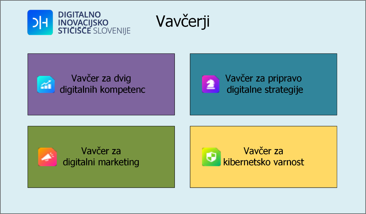 Namen vavčerja je spodbuditi ciljne skupine k zagotovitvi ustreznih znanj zaposlenih in vodstvenega kadra za ključna področja digitalizacije.